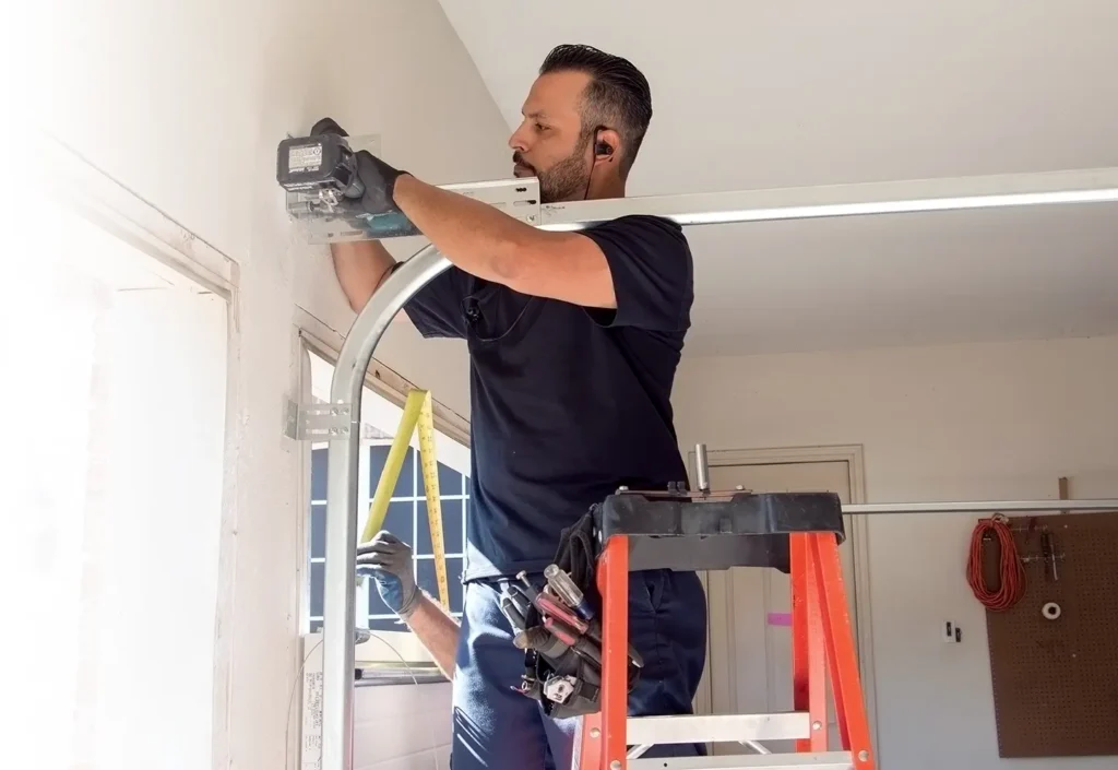 Next, we install new tracks, springs, cables, rollers, and hardware. Every part is aligned and balanced to ensure smooth operation.